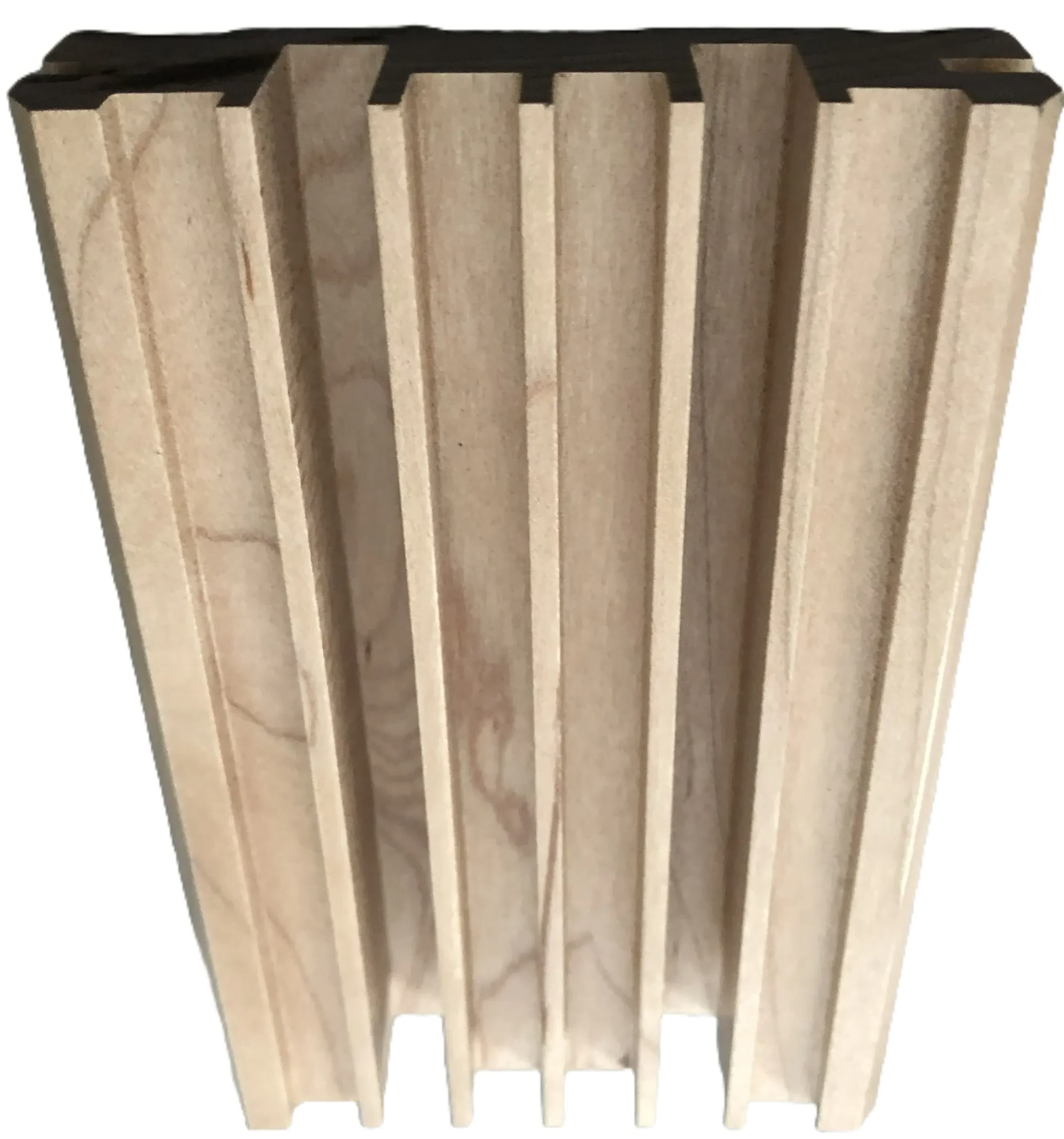 The FlutterFree® T Plank is an attractive, furniture-grade solid wood molded acoustical plank developed using RPG’s patented Aperiodic Modulation of a Single Asymmetric Optimized Base Shape. This technique produces a new optimized, asymmetric profile with folded wells to improve the diffusion bandwidth. When this new profile, with “L” shaped folded side wells, is mounted in an aperiodic fashion, “T” shaped wells are formed between adjacent units, providing dramatically improved performance over the traditional designs. A back-slotted configuration transforms the FlutterFree® T Plank into a hybrid product that offers sound absorption just below the sound diffusion bandwidth, extending the overall bandwidth of the product to solve multiple room acoustic issues in one attractive product.