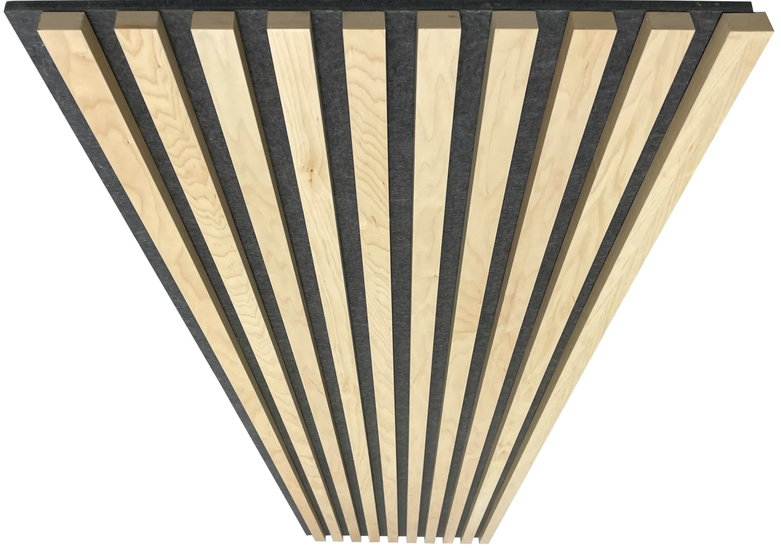 The Parallels™ DITTO is manufactured with a wood veneer facing on black fire-rated MDF blades secured to a continuous high-density PET acoustical backer. Parallels™ DITTO is designed to be installed on walls and is available standard in wood veneer, and an FSC®-certified core is available when required. An NRC of 0.75 to 0.95 is achievable with our standard mounting details.